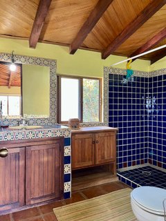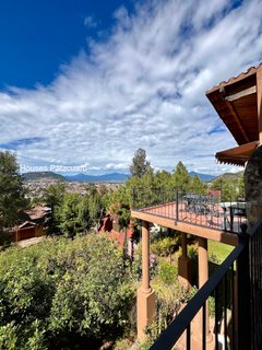 Ubicada en un vecindario boscoso cerca del centro histórico, esta acogedora casa estilo cabaña cuenta con: